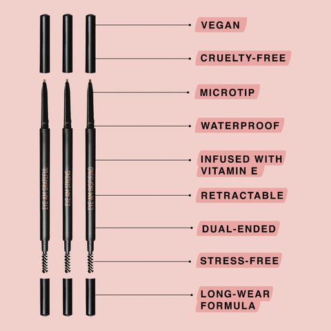 But why all the excitement, you ask? Well, let me introduce you to the DEFINER BROW PENCIL – it's a game-changer. This pencil boasts a micro tip that allows you to create delicate, hair-like strokes, resulting in brows that look as natural as if you woke up that way. And the best part? It comes in three shades, ensuring you find the perfect match to blend seamlessly with your natural brows. But wait, there's more! (I told you, it's hard to pick just one favorite!) It's not just your brows that will last all day – this pencil itself is impressively long-lasting.